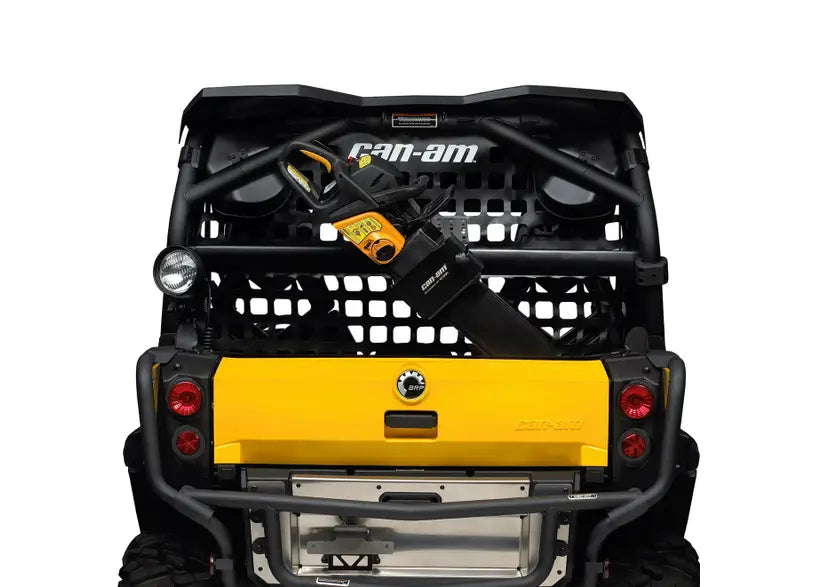 Introducing the Universal Saw Press by Kolpin, a bold solution for the adventurous spirit who demands secure transport of their chainsaw while on the go. Crafted specifically for your side-by-side vehicle, this heavy-duty, black powder-coated metal bracket accommodates chainsaws with bars up to 20 inches. With rubber pads ensuring a snug fit and cushioning, your saw is protected from jostling on rugged terrains. Its hinged design allows for quick removal, while the ability to hold the saw vertically or at a 45-degree angle adds versatility. Remember, this accessory requires a Gear Rail (715003703) for optimal use, and a protective sheath is included. Gear up and tackle the wild with confidence!